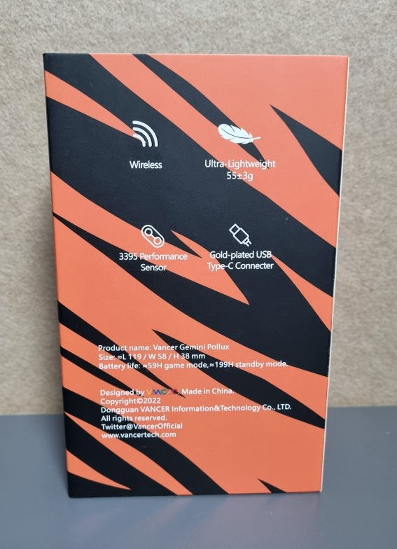 ▶밴서 제미니 프로 폴룩스 경량 게이밍 마우스 패키지 및 스펙사항