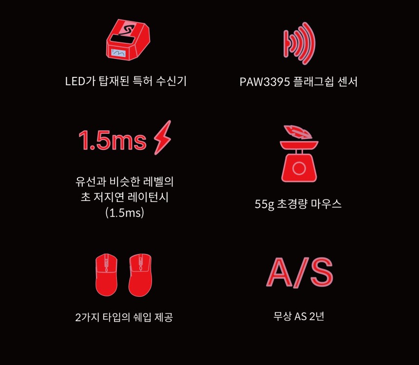무엇보다 55g의 초경량 마우스답게 마우스를 잡자마자 느낄정도로