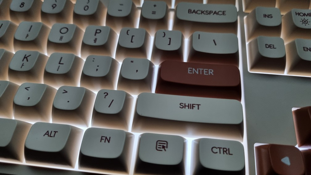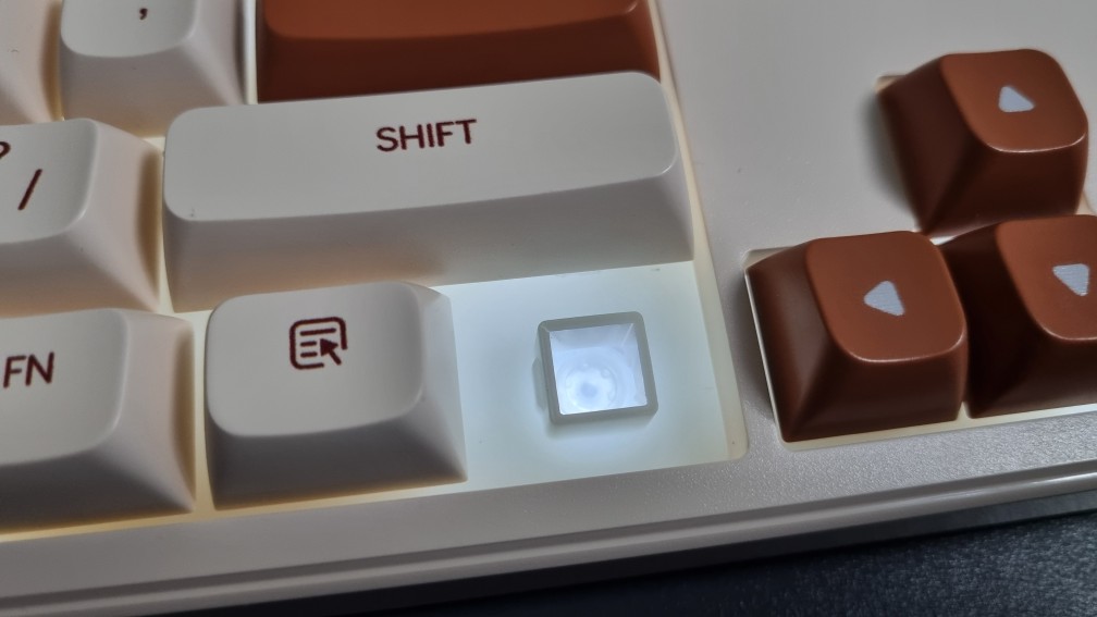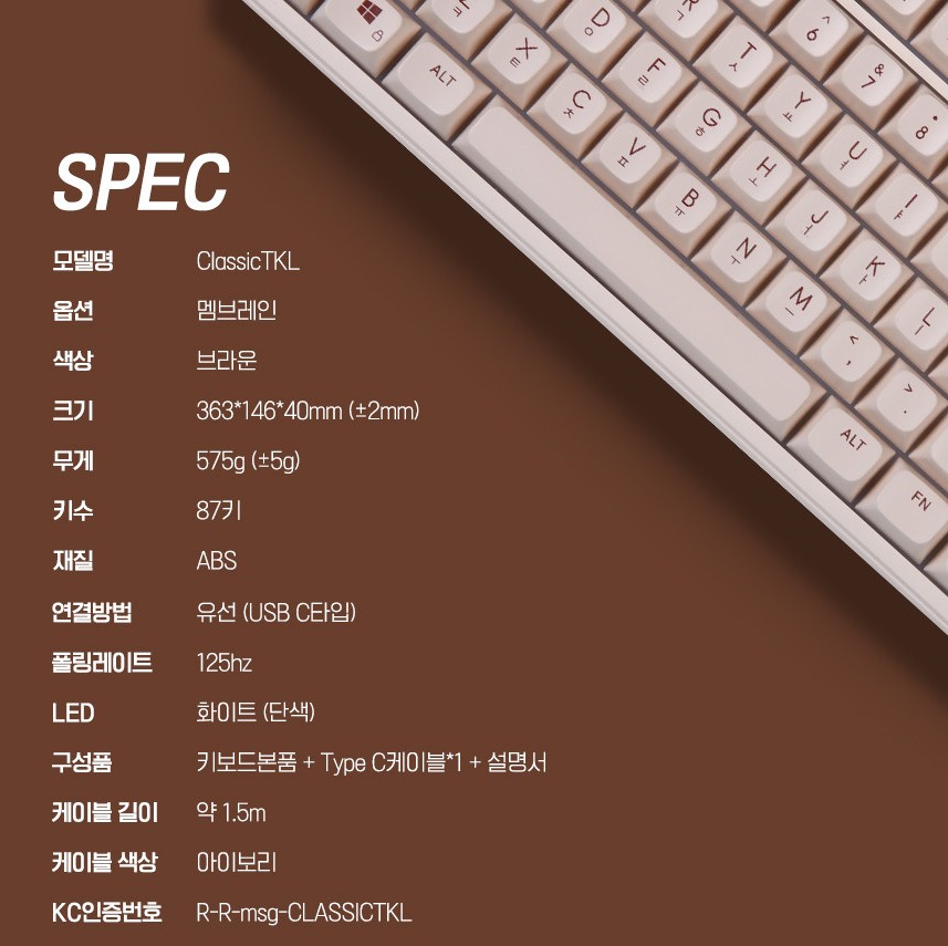 특정 키캡의 브라운색상으로 인해서 포인트를 강조하여 외관상으로 심플하면서도 깔끔합니다.