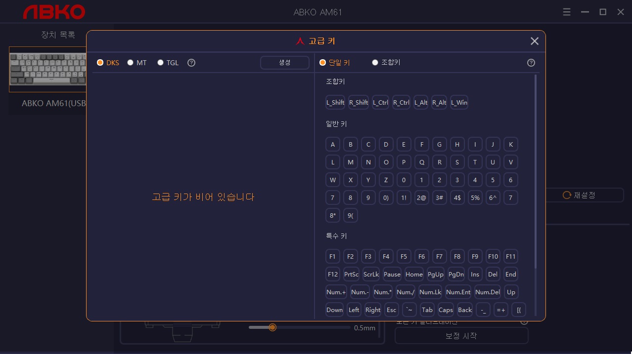 소프트웨어 처음실행시 키 커스텀 화면입니다.