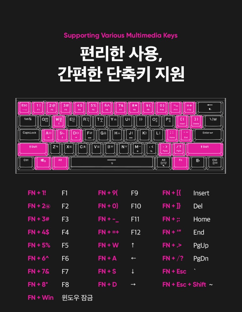 기존 키보드의 60%의 크기로서 게이밍 환경에 좋은 61Key 미니 키보드입니다.