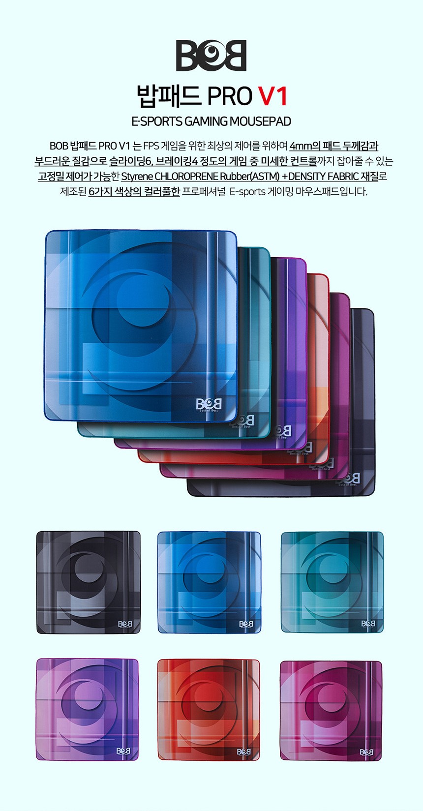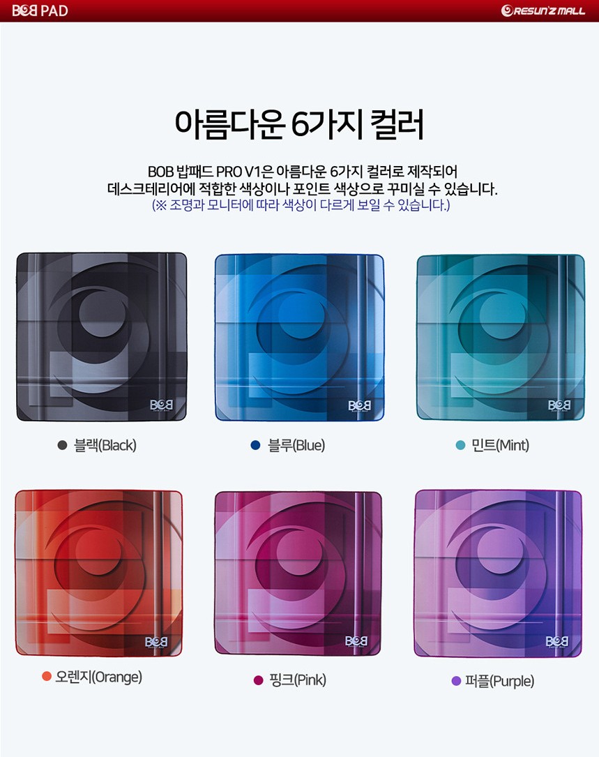 BOB 밥패드 PRO V1 게이밍마우스패드는 6가지의 색상으로 출시 되었습니다.
