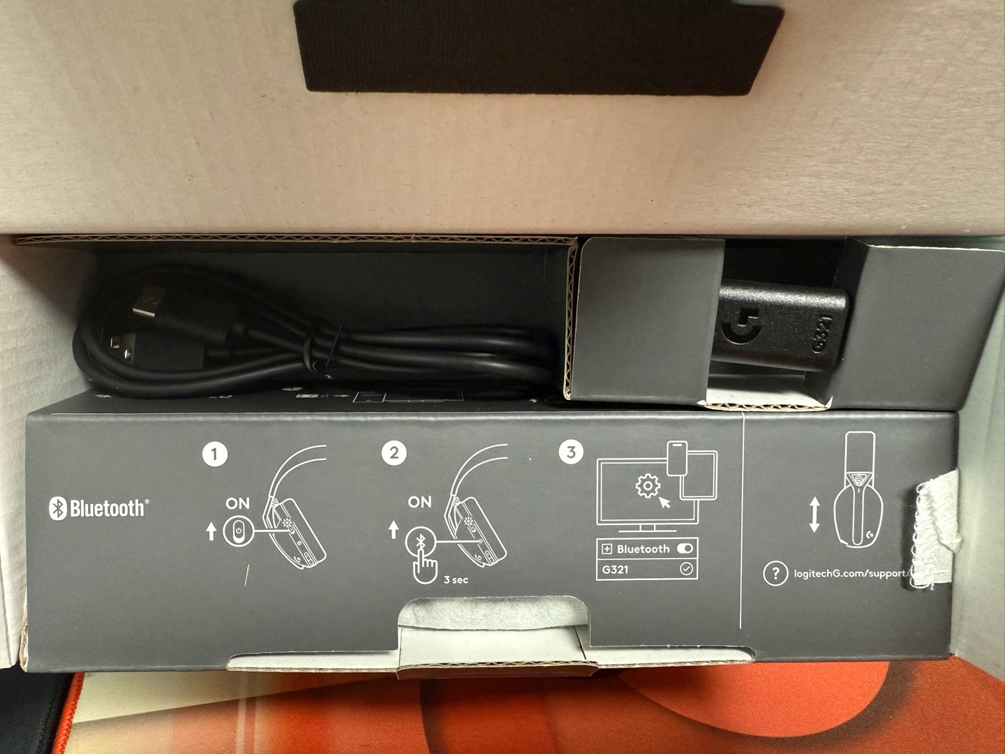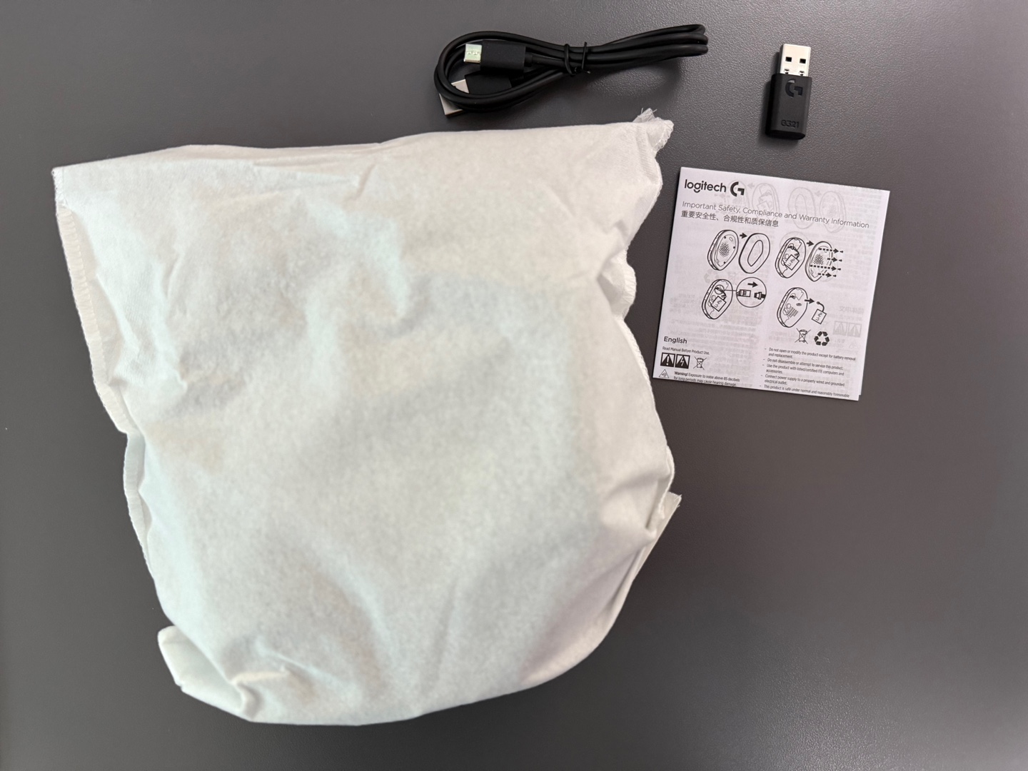 G321 LIGHTSPEED 무선 게이밍 헤드셋 본품, 무선 수신기, 충전 케이블과 사용 설명서로 구성되어있습니다.